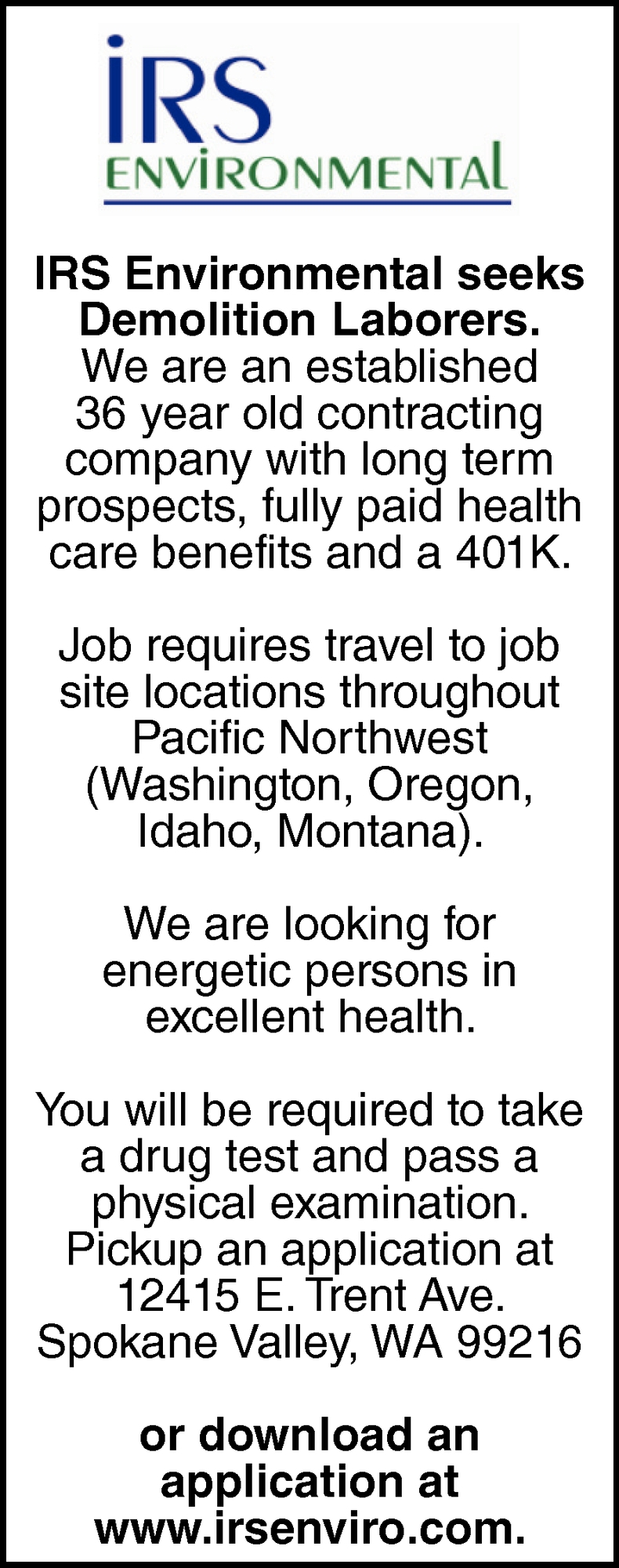 Jobs for IRS Environmental in Spokane, WA