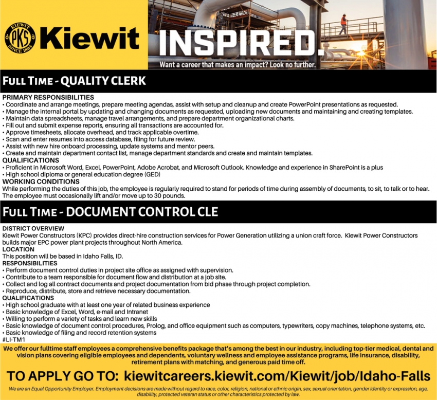 Jun 08, 2022. Kiewit Manufacturing Jobs from East Idaho Jobs