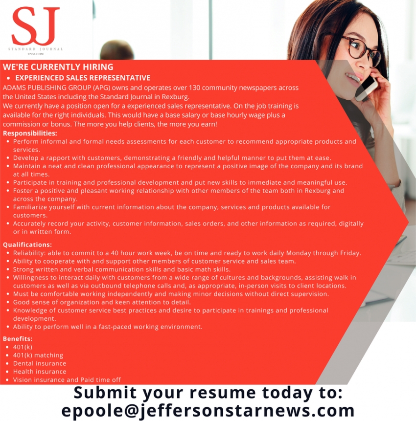 Aug 03, 2022. Standard Journal Sales & Marketing Jobs from East Idaho Jobs