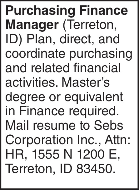 Nov 22, 2025. Sebs Corporation Inc. Manager/Administrator Jobs from East Idaho Jobs