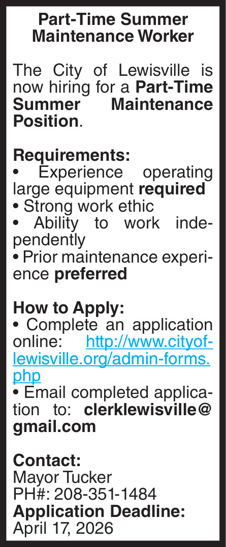 Jobs for City of Lewisville in Lewisville, ID